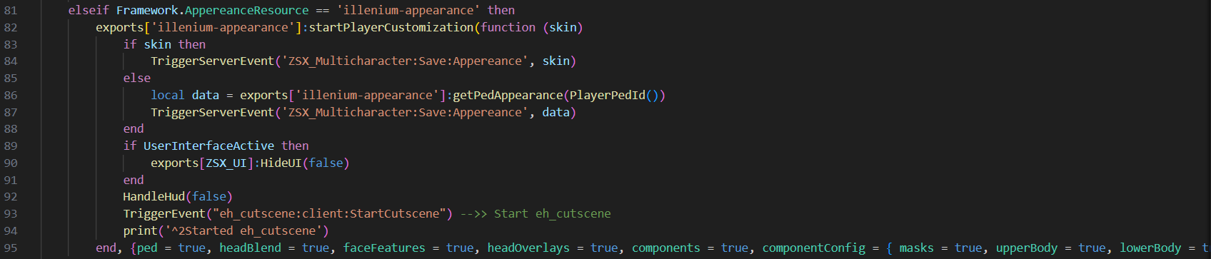 If you're using `ZSX_Multicharacter`, you may need to make some additional modifications. Follow the instructions below based on your clothing script. *<mark style="color:orange;">**If you're not using**</mark><mark style="color:orange;">**&#x20;**</mark><mark style="color:orange;">**`ZSX_Multicharacter`**</mark><mark style="color:orange;">**, you can skip this section**</mark>.*